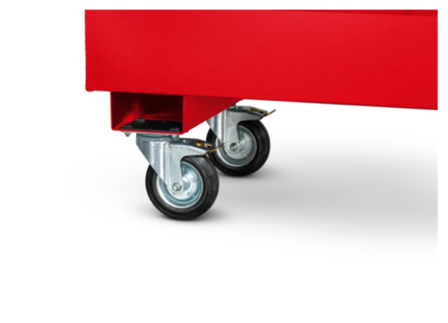 Equipped with fork skids featuring fixing slots for easy addition of castors