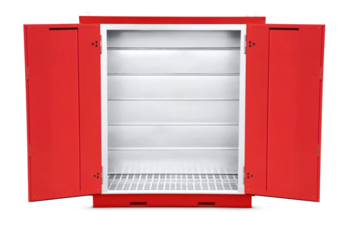 Featuring a spacious interior, the FR100-C provides ample storage room, complemented by a 220-litre sump capacity to contain spillages effectively. Its modular design facilitates easy assembly and transportation, catering seamlessly to both temporary and permanent storage requirements. The inclusion of double doors further enhances accessibility, accommodating larger items with ease.
