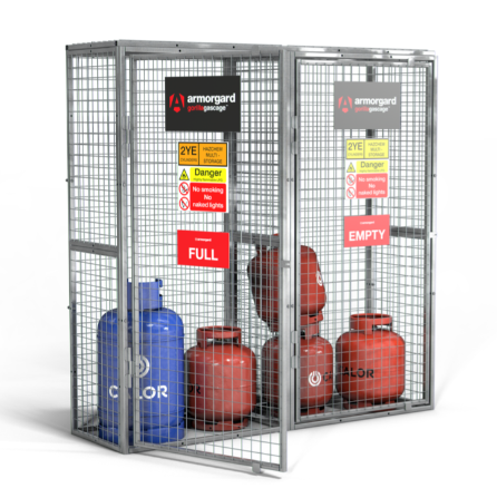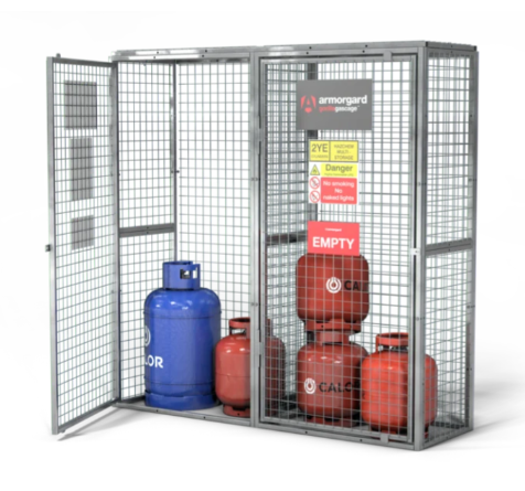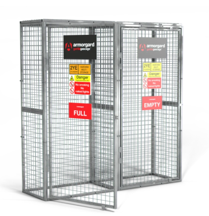 COSHH compliant secure gas cylinder cage with two separate compartments for empty and full bottles