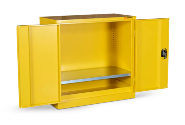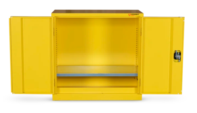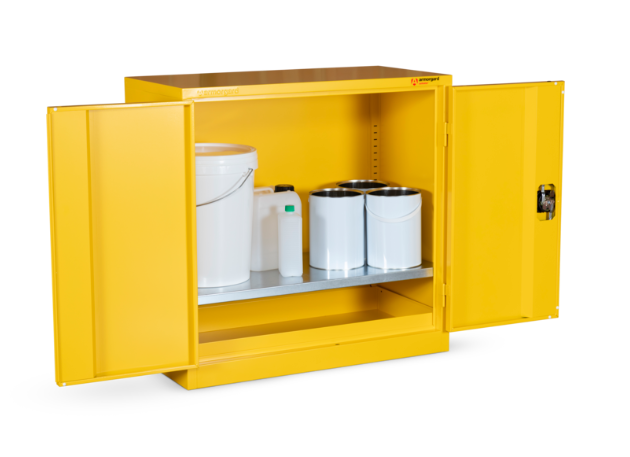The HFC3 sets the standard for indoor secure and compliant hazardous material storage, offering unparalleled durability, security, and versatility. It has a liquid-tight sump to contain spillages of up to 24 litres as well as galvanised shelves and reinforced doors for extra security. Its powder-coated paint finish and relevant warning signs also offer additional peace of mind.