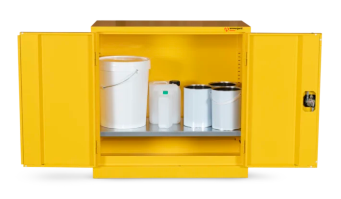 Introducing the Armorgard SafeStor HFC3, a robust and innovative solution for secure hazardous material storage. Engineered with safety in mind, this hazardous substance storage unit is designed to be compliant with safety regulations and has been built to resist fire for 30 minutes.